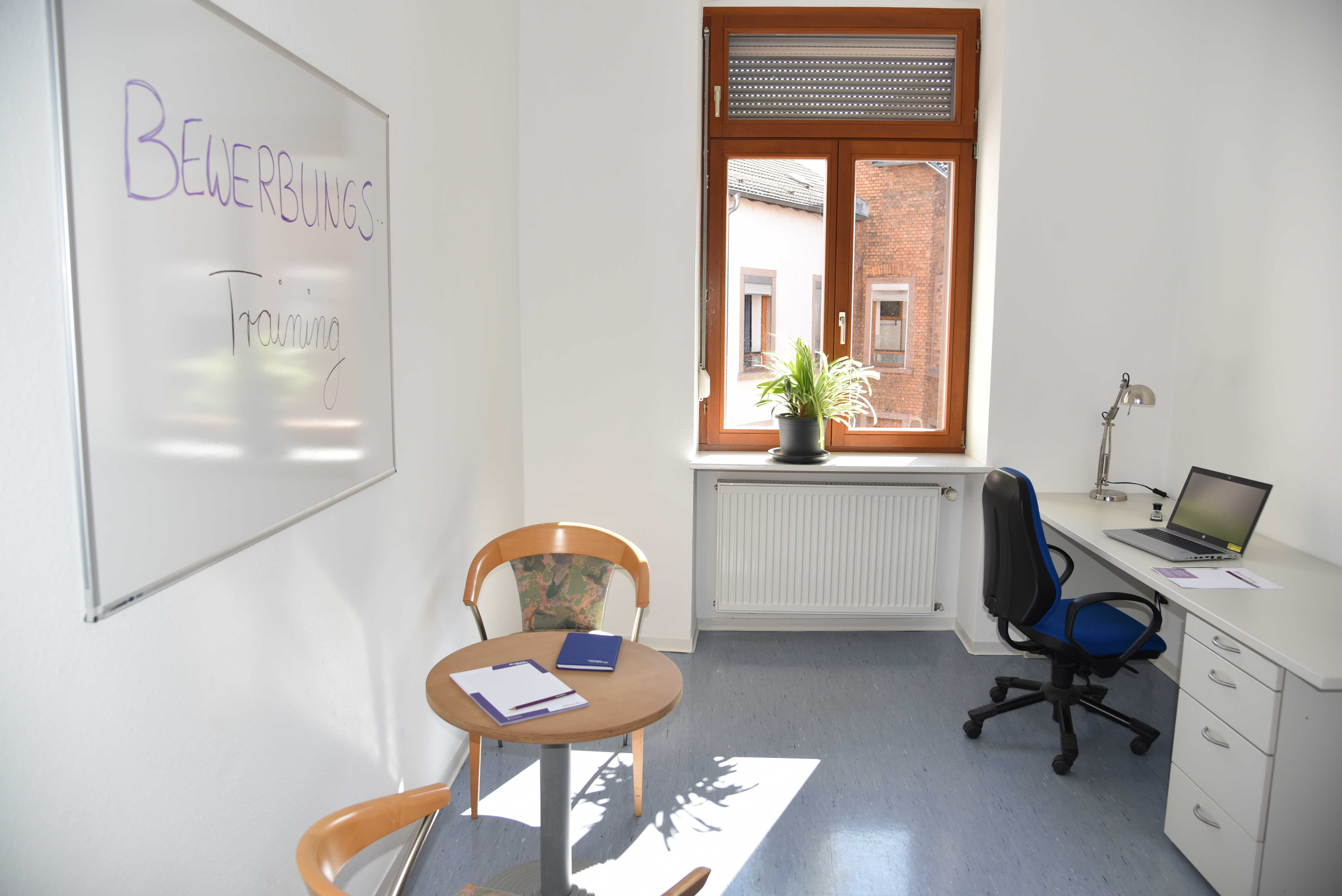 Für Stellenrecherche, Wohnungssuche etc. gibt es ein helles freundliches Bewerbungstrainingszimmer mit Schreibtisch und Computer.