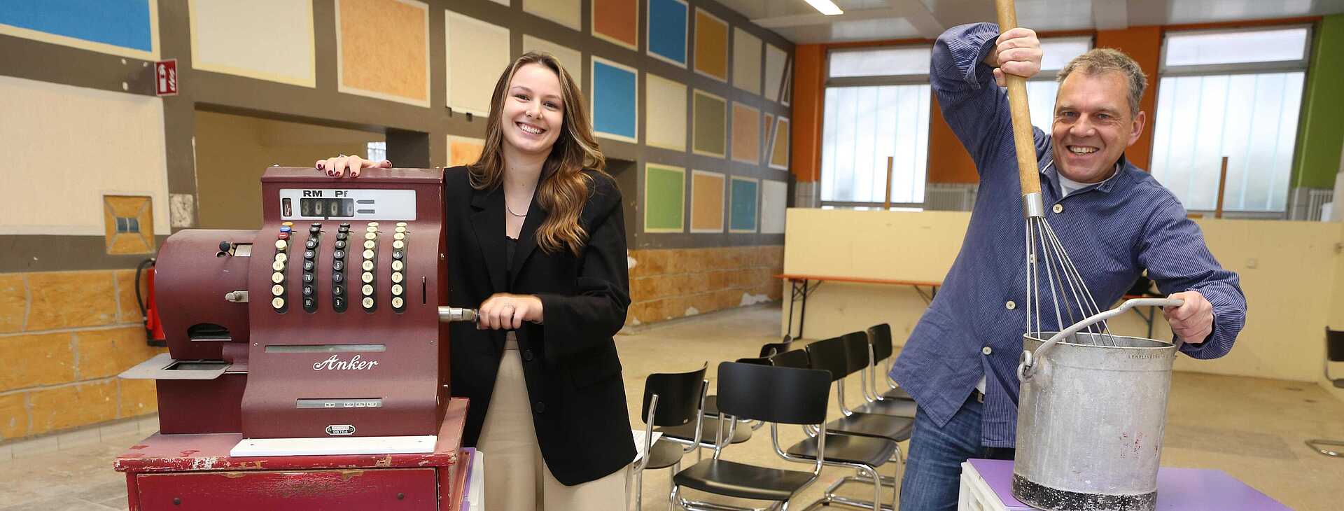 Die Exponate reichen von einer Bibel mit Widmung der Kaiserin bis zu einem Gaming-PC, der aufzeigt, wie in unserer Berufsschule digitale Medien in der Bildung eingesetzt werden. „Es wird also an der einen oder anderen Stelle auch interaktiv – Dinge können angefasst und ausprobiert werden“, berichtet Stefan Zeiger. Immer wieder ist er in den vergangenen Monaten auf die Suche nach interessanten Exponaten gegangen. „Wir haben spannende Orte aufgesucht, darunter verlassene Dachböden und Keller. Wir haben Gegenstände gefunden, die eine Geschichte erzählen“, so der Geschäftsführer der Diakonischen Gemeinschaft. Hephata und die Diakonische Gemeinschaft öffnen sich den Besucher*innen der Ausstellung wörtlich genommen in ganz besonderer Weise.