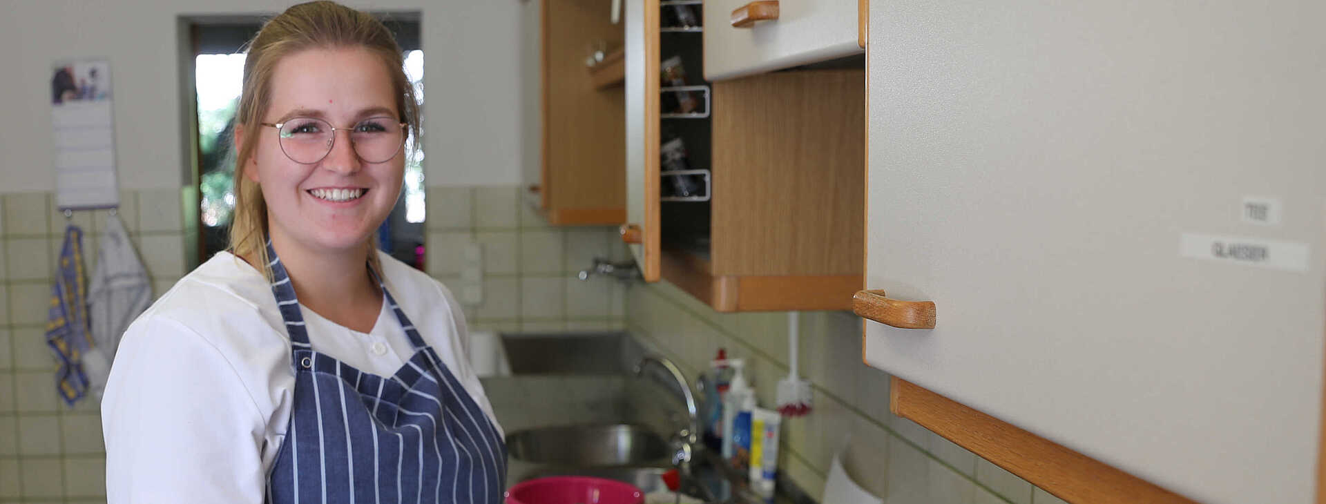Wie abwechslungsreich der Beruf ist, weiß Luisa England. Sie hat bei der Hephata Diakonie ihre Ausbildung absolviert und ist heute als Hauswirtschafterin gefragte Ansprechpartner*in von Kolleg*innen und Klient*innen. Dabei übernimmt sie Verantwortung in verschiedenen Feldern, wobei sie sowohl