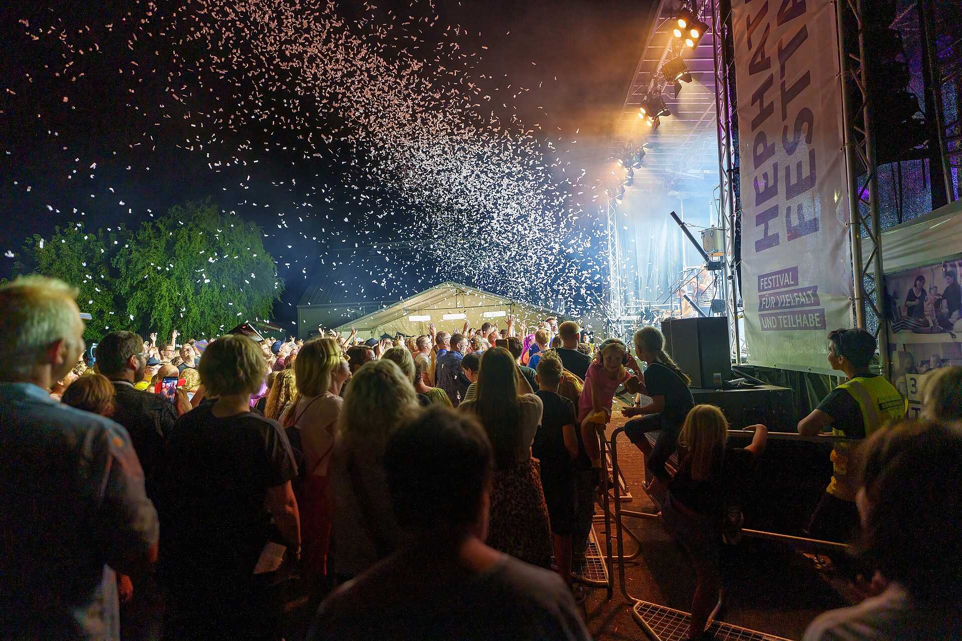Zum Partyplanet wurde das Stammgelände der Hephata Diakonie in Schwalmstadt-Treysa im vergangenen Jahr mit den „Fäaschtbänklern“ und 1.800 Konzertbesucher*innen am Samstagabend, dem ersten von zwei Festivaltagen. Der Sonntagnachmittag stand mit dem „Happy Sound Orchestra“ und „Julia Lindholm“ musikalisch im Zeichen von Frank Sinatra und Abba.
