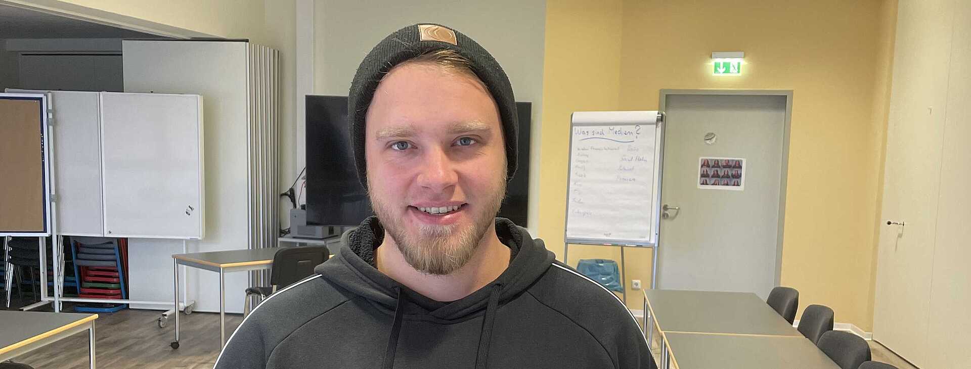 Bei der Bewerbung wollte er zuerst die Praxisintegrierte vergütete Ausbildung zum Erzieher absolvieren. „Im Aufnahmeverfahren rieten mir die Dozent*innen zur vollschulischen Ausbildung. So kann ich mich erstmal ganz auf die Inhalte konzentrieren und sammle über die Praktika dennoch Praxiserfahrungen“, erzählt Johannes Euler. „Mithilfe von Bildungsgutscheinen der Arbeitsagentur kann ich mich ganz der vollschulischen Ausbildung widmen.“