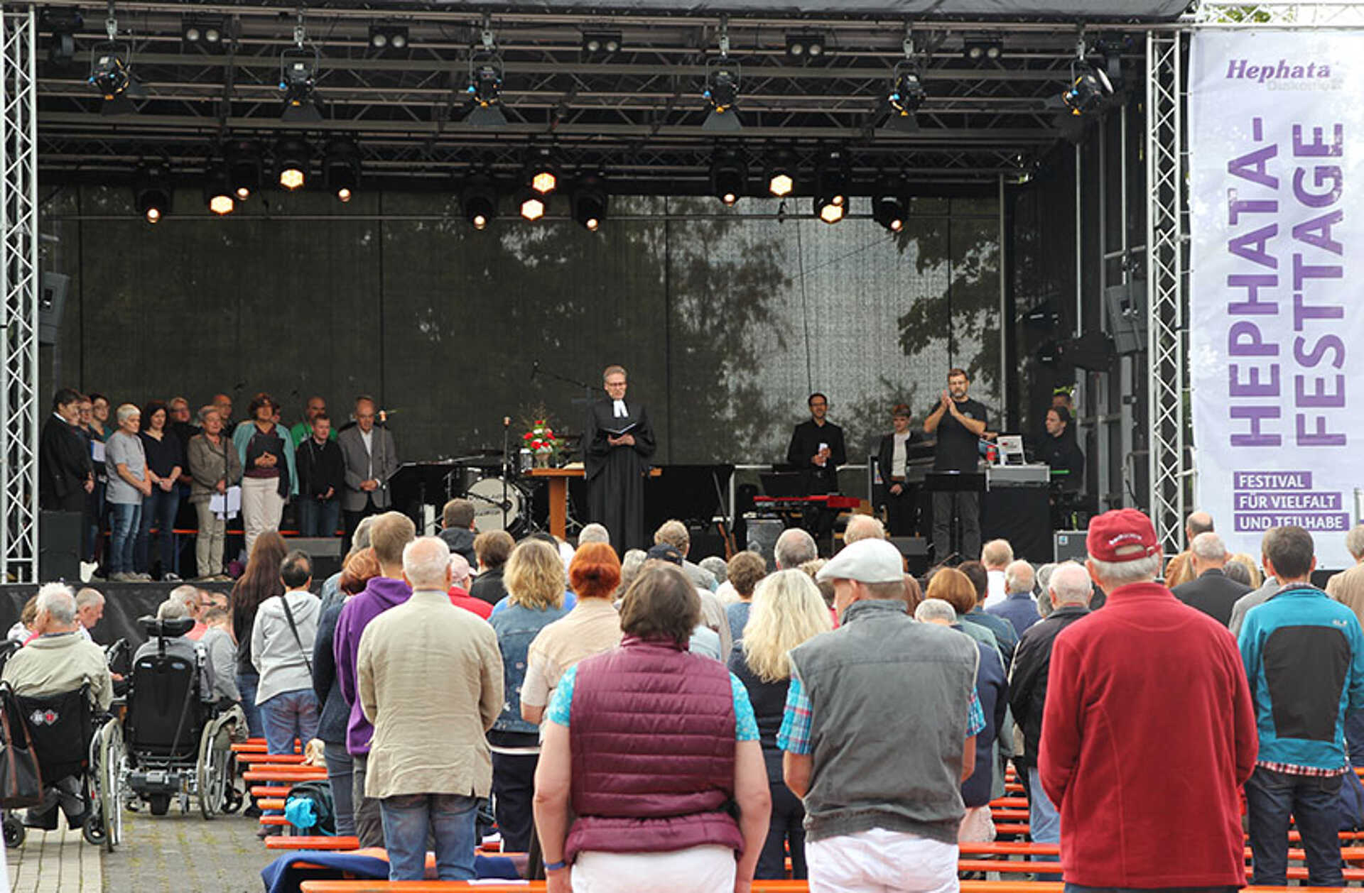 Dass das Festival für Vielfalt und Teilhabe viele Menschen ansprechen würde, hatte sich bereits bei der Auftaktveranstaltung am Samstagmorgen gezeigt: 130 Gäste waren in den Hephata-Kirchsaal gekommen, um die Auftaktveranstaltung unter dem Titel „Unerhört!“ zu erleben. Mit dem Titel griff Hephata die zu diesem Zeitpunkt aktuelle Kampagne der Diakonie Deutschland auf. Der doppeldeutige Kampagnentitel soll auf Menschen und Themen aufmerksam machen, die im öffentlichen Diskurs oft unerhört bleiben oder über die das Urteil: „Das ist ja unerhört!“ gefällt wird. Die Journalistin Petra Nagel kam in drei Interviewrunden mit eben diesen Menschen über diese Themen ins Gespräch - Geflüchtete, Suchtkranke und Alltagshelden.