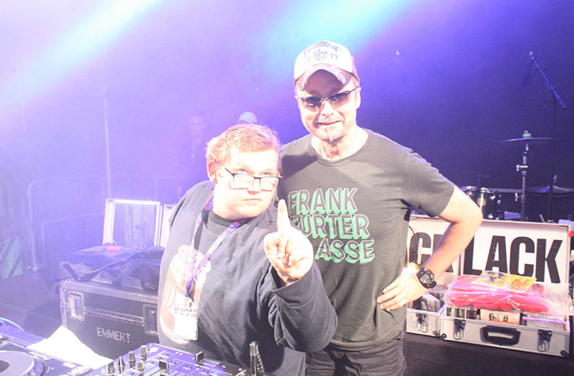 Die größte Begeisterung ernteten aber die beiden DJs „Lackenegger“ und „Blackriver“. Hr3-Moderator Peter Lack alias „Lackenegger“ und Lukas Schwarzbach, Klient der Hephata-Behindertenhilfe, alias „DJ Blackriver“, legten gemeinsam Musikstücke aus den 90er-Jahren auf. Das inklusive Duo sorgte mit CD-Playern und Mikrofon für absolute Partystimmung.