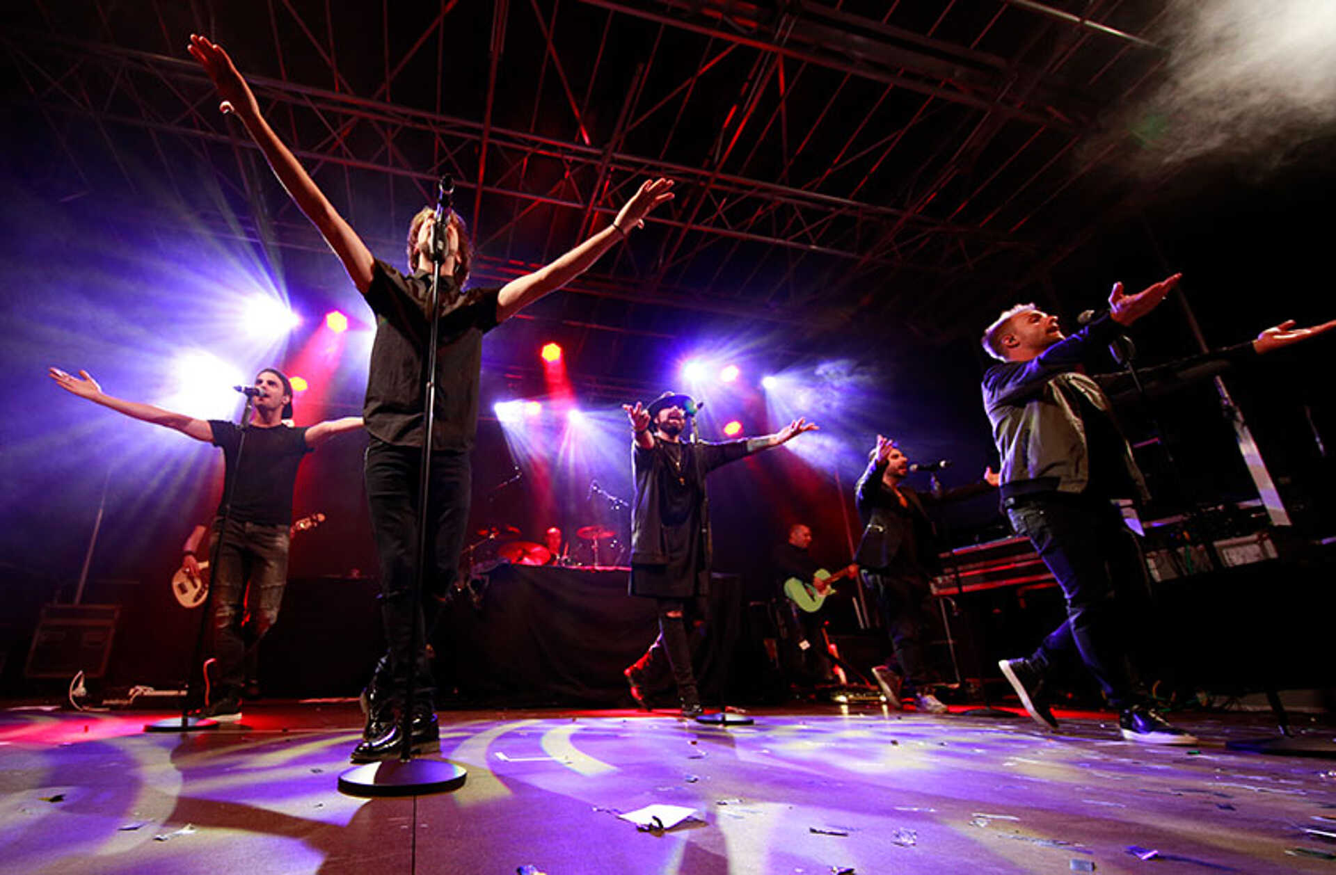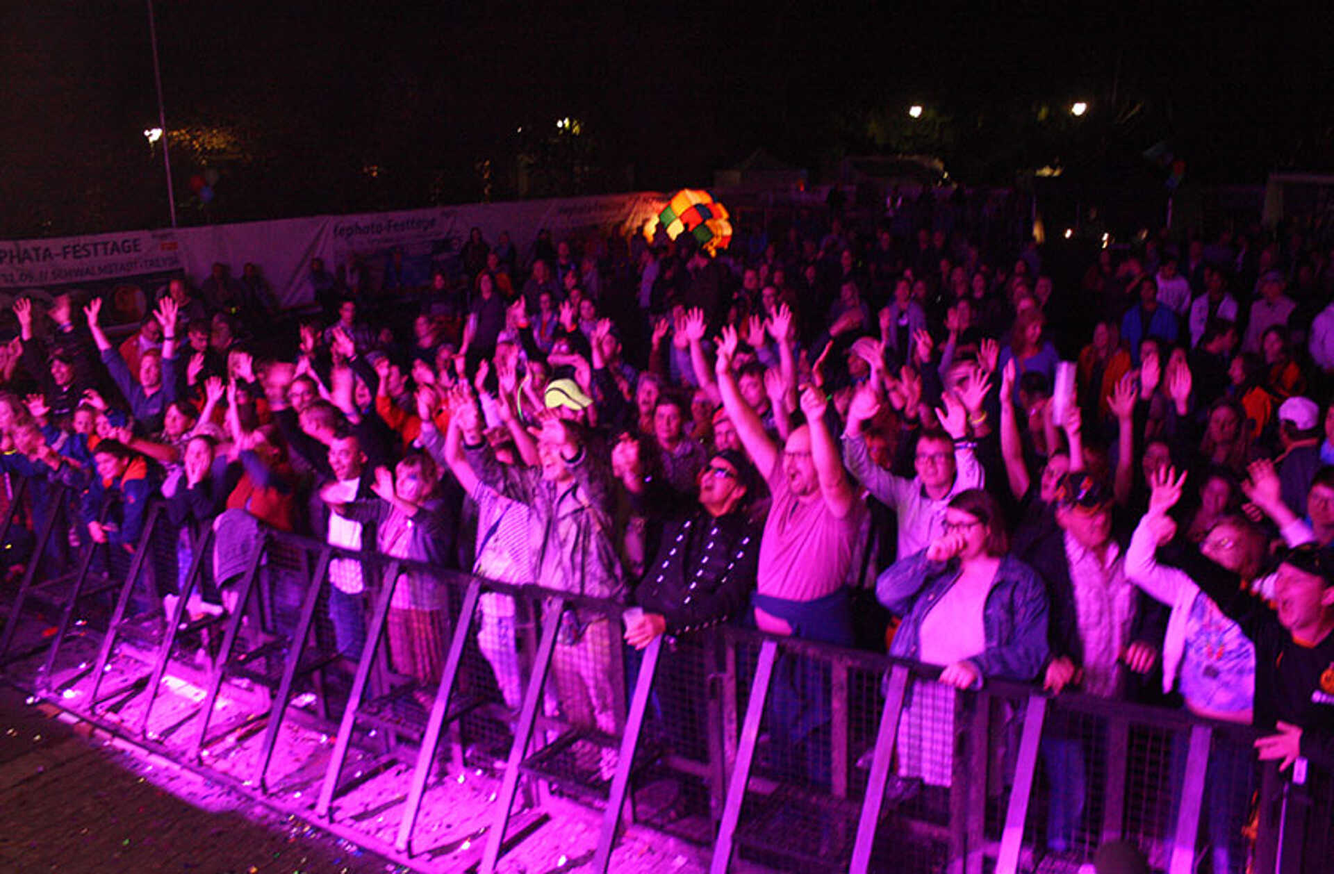 Das war auch bei der 90er Open-Air-Party am Samstagabend Programm. Gleich drei Gruppen sorgten für Tanzstimmung auf dem großen Festplatz an der Hephata-Gärtnerei. Judith Hildebrandt alias T Seven, die als Frontfrau der Gruppe „Mr. President“ in den 90ern große Erfolge feierte, interpretierte mit Gitarrist Volkmar Rudolf Dittmar Hits wie „Right in the night“ und „Mr. Vain“ neu. Die Jungs von „Backstreet’s Back“, eine Backstreet-Boys-Tribute-Show aus Italien, heizten den rund 1.000 Gästen unter anderem mit „Get down“, „All I have to give“ und „I want it that way“ ein.