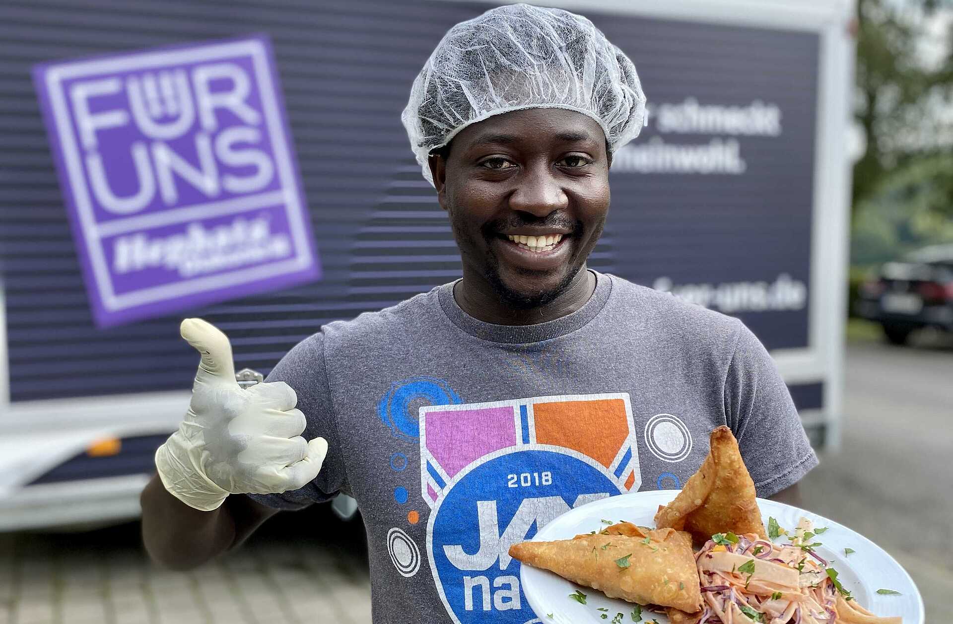 Seine liebste Arbeitsstelle war jedoch die Küche, wo er dann erst alleine und später wieder gemeinsam mit Klient*innen und Mitarbeitenden kochte und „neue Gerichte kreierte“ – zuletzt die Rübchen Samosa, bei denen hessisches Traditionsgemüse (Steckrübe) auf afrikanische Gewürze traf. „Ich konnte hier viel über Kochen, Hygiene und die Arbeit mit Menschen mit einer Beeinträchtigung lernen“, sagt er. In Uganda gebe es eine solche Art von Zusammenarbeit kaum. Anfangs hatte er Berührungsängste, aber mittlerweile „funktioniert es sehr gut. Es ist, als hätte ich nie etwas anderes gemacht. Die Arbeit mit Menschen mit einer Beeinträchtigung ist erfüllend. Sie geben einem viel zurück. Wenn mein Land so eine Organisation für sie hätte, wäre es das beste“, sagt er.