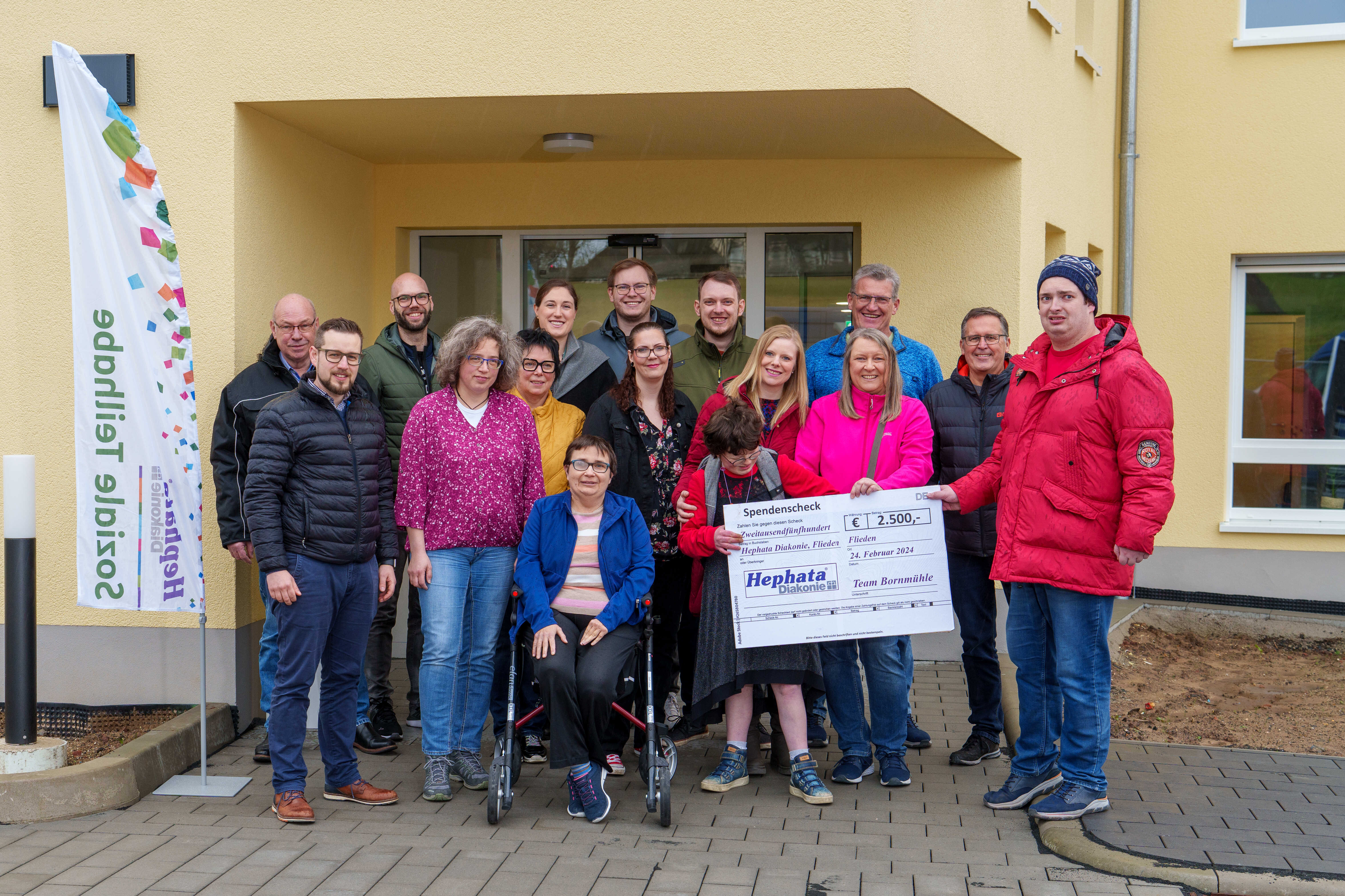 Die Hermann-Schuchard-Schule (HSS) ist ein Teil von der Hephata-Förderschule. Sie ist eine Schule für Kinder und Jugendliche zwischen 6 und 20 Jahren mit Behinderungen. Das Gebäude der HSS hat ein Flach-Dach. Das Dach ist nicht mehr dicht. Es kommt Wasser in das Gebäude. Im Jahr 2022 haben uns Menschen Geld für die Reparatur gespendet. Das Geld hat leider nicht gereicht. Deswegen haben wir noch mal um Spenden gebeten. Menschen haben uns dafür 63.446 Euro gegeben.