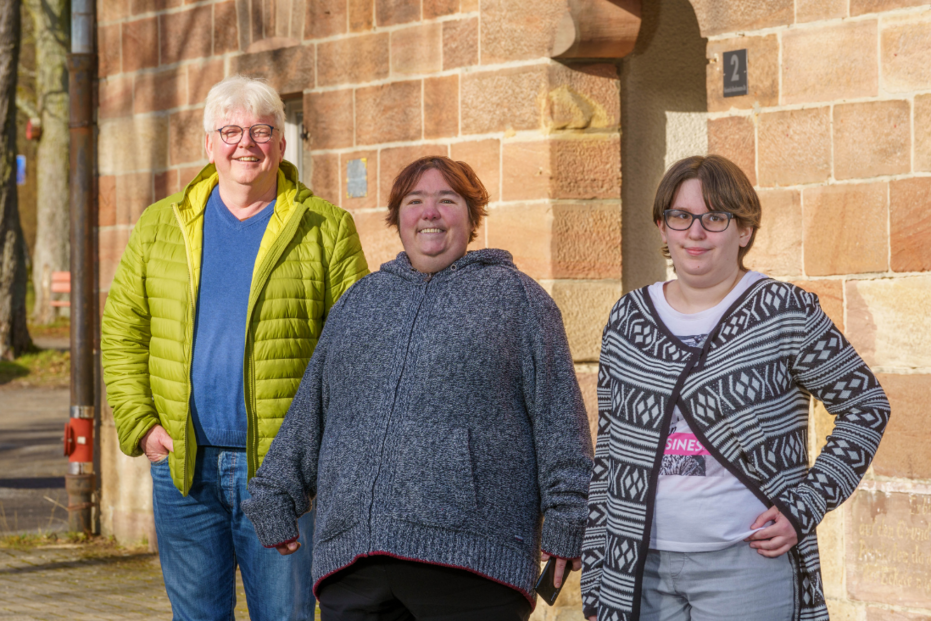 Auf dem Foto zu sehen sind: Johannes (Berater), Elisabeth (Vorsitzende) und Moni (Beraterin, von links).