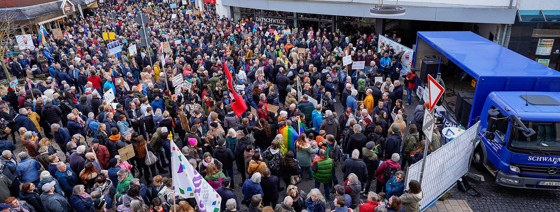 Dankbar und stolz sind wir auch über den Einsatz vieler Mitarbeiter*innen und Klient*innen mit uns gemeinsam bei Demonstrationen gegen Rechtsextremismus. Die Demonstrationen haben Anfang des Jahres 2024 in vielen deutschen Städten stattgefunden. Zum Beispiel in Kassel, Marburg, Treysa oder Neustadt. Gemeinsam mit tausenden anderen Menschen haben wir uns stark für die Demokratie gemacht. Und Reden gegen den Rechtsextremismus und für Vielfalt gehalten.