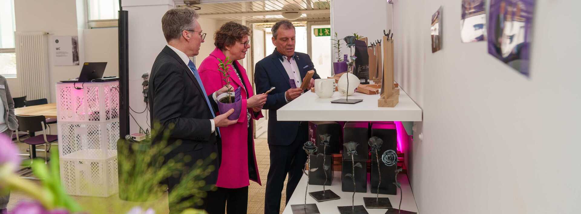 Bischöfin Beate Hofmann eröffnete die Ausstellung gemeinsam mit Maik Dietrich-Gibhardt und Stefan Zeiger, der im Laufe des Nachmittags auch Führungen durch die Ausstellung anbot. An Ende der Ausstellung überreichte Maik Dietrich-Gibhardt Beate Hofmann die Hephata-Jubiläumspflanze: ein Olivenbäumchen der Hephata-Gärtnerei. Maik Dietrich-Gibhardt: „Die Olivenpflanze ist in der Bibel ein Zeichen für Versöhnung, Hoffnung und Frieden, sie wollen wir auch in unserem Jubiläumsjahr schenken und pflegen.“