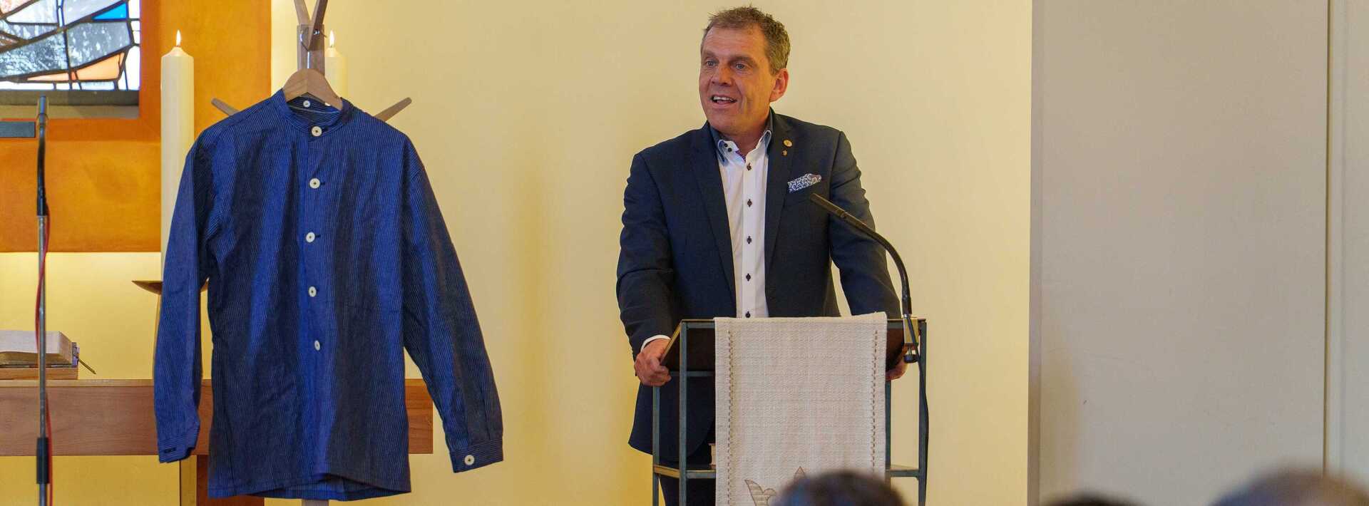 Diakon Stefan Zeiger stellte kurz die Geschichte der Diakonischen Gemeinschaft anhand eines Brüderkittels dar, der früher Diakonen und später auch Diakoninnen, als Arbeitskleidung diente: „Er steht für die gemeinsamen Wurzeln, für die Geschichte und ihre Geschichten, für die Menschen, die ihn getragen haben und für all diejenigen, für die er getragen wurde.“ Heute trügen Diakoninnen und Diakonen keine Kittel mehr. Rollen und Selbstverständnis hätten sich gewandelt, die Gesamtverantwortung für das große diakonische Unternehmen läge seit Jahrzehnten schon nicht mehr in den Händen der Diakonischen Gemeinschaft. Stefan Zeiger: „Ja, wir haben das Gewand gewechselt, tragen aber den christlichen Auftrag und den Geist einer guten Gemeinschaft ganz im Sinne der Mitmenschlichkeit und Nächstenliebe in Vielfalt und Teilhabe weiter mit uns.“
