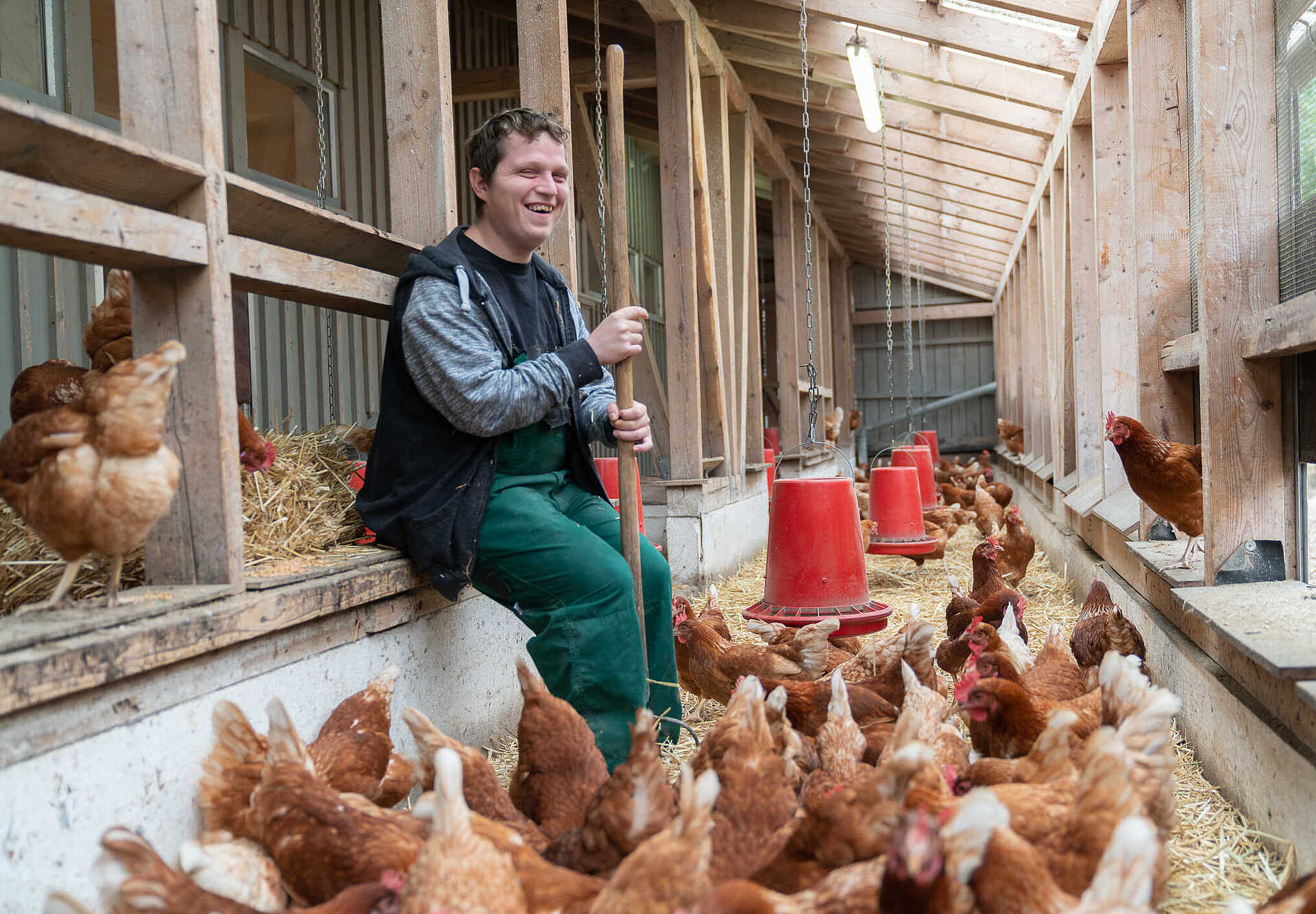 Über 950 Legehennen aus ökologischer Tierzucht leben auf dem Biogeflügelhof Leuderode. Versorgt werden Sie von über 40 Beschäftigten, die an einer Abhängigkeitserkrankung, einer psychischen Erkrankung oder einer Kombination von beidem erkrankt sind.