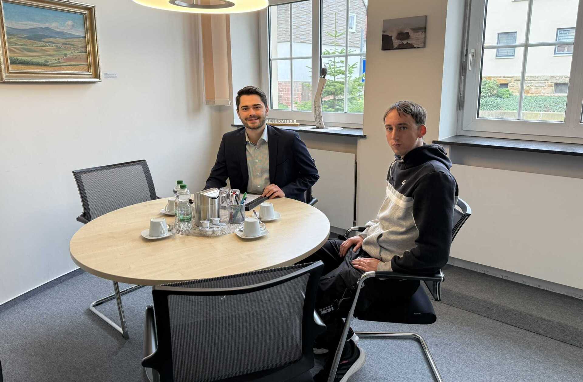 Beim Schichtwechsel 2025 besuchte Bürgermeister Lukas Daum den Berufsbildungsbereich der Sozialen Rehabilitation und beantwortete Fragen der Klient*innen zu Politik, Beruf und Inklusion. Im Gegenzug lernte Thomas Röder das Rathaus und den Bauhof Gilserbergs kennen – und entdeckte dabei Aufgaben und Geräte, die ihm aus seiner eigenen Ausbildung vertraut sind.