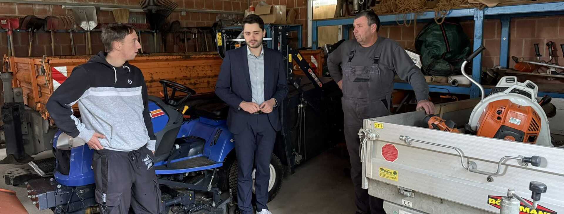 Im Anschluss lud der Bürgermeister Thomas Röder, Beschäftigter im Berufsbildungsbereich mit Schwerpunkt Garten- und Landschaftsbau, ins Rathaus ein. Gemeinsam besichtigten sie Einwohnermelde-, Bau- und Standesamt. Danach führte Daum ihn auf den Bauhof, wo Röder Geräte wie den Freischneider aus seiner eigenen Arbeit wiedererkannte.