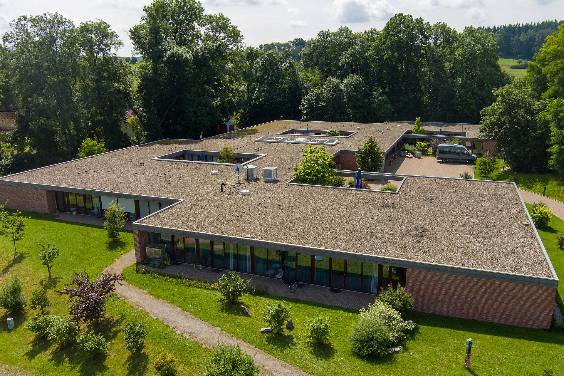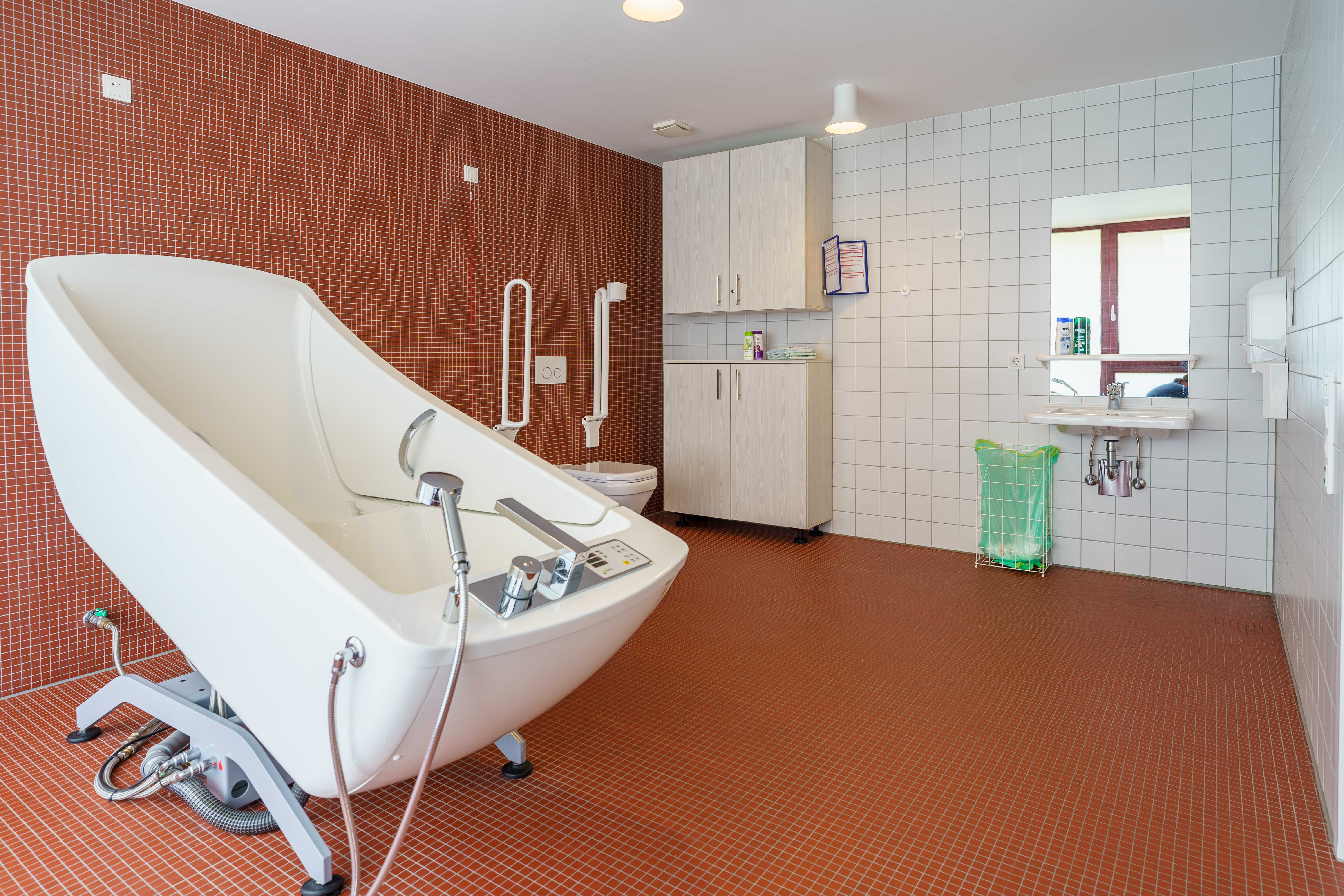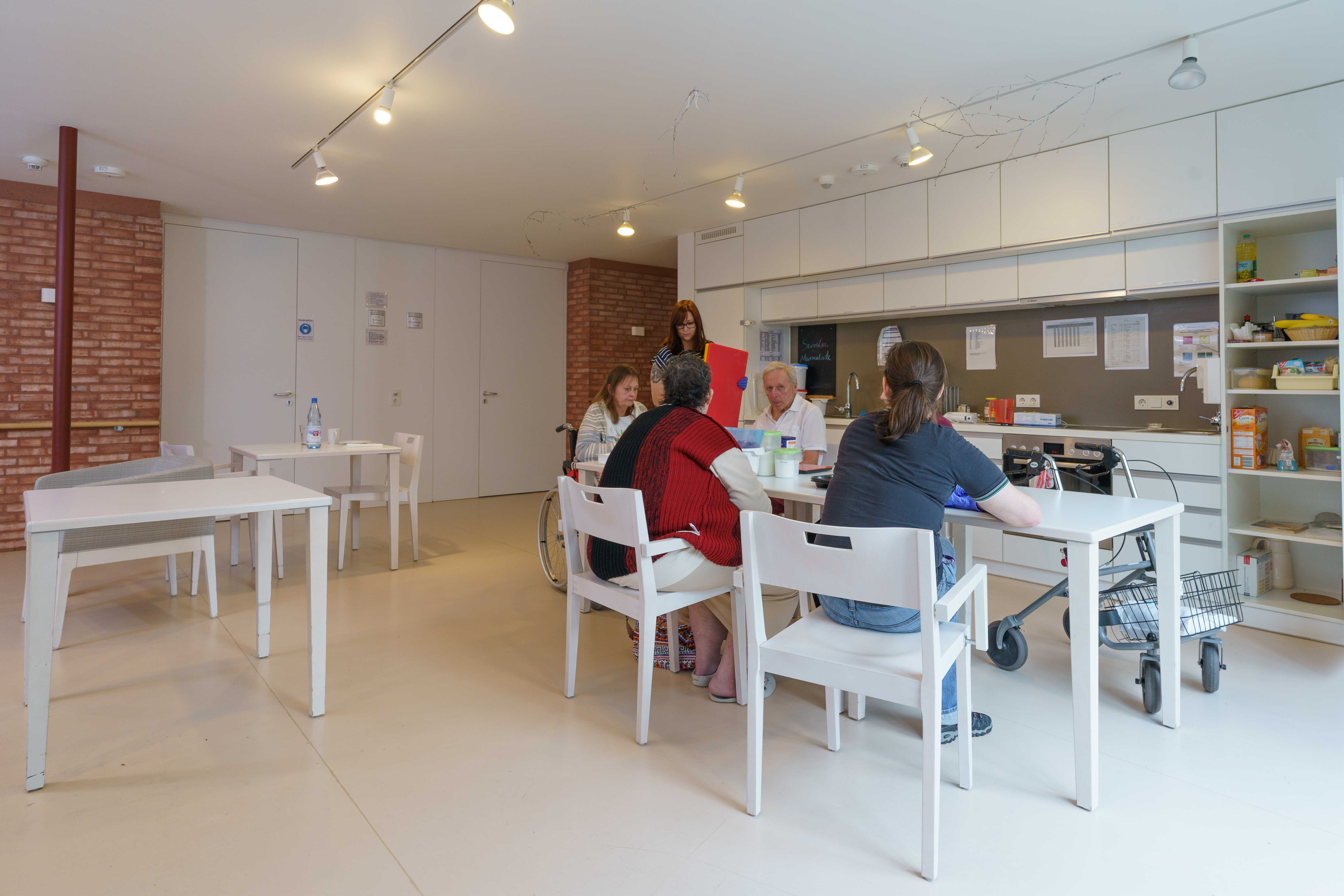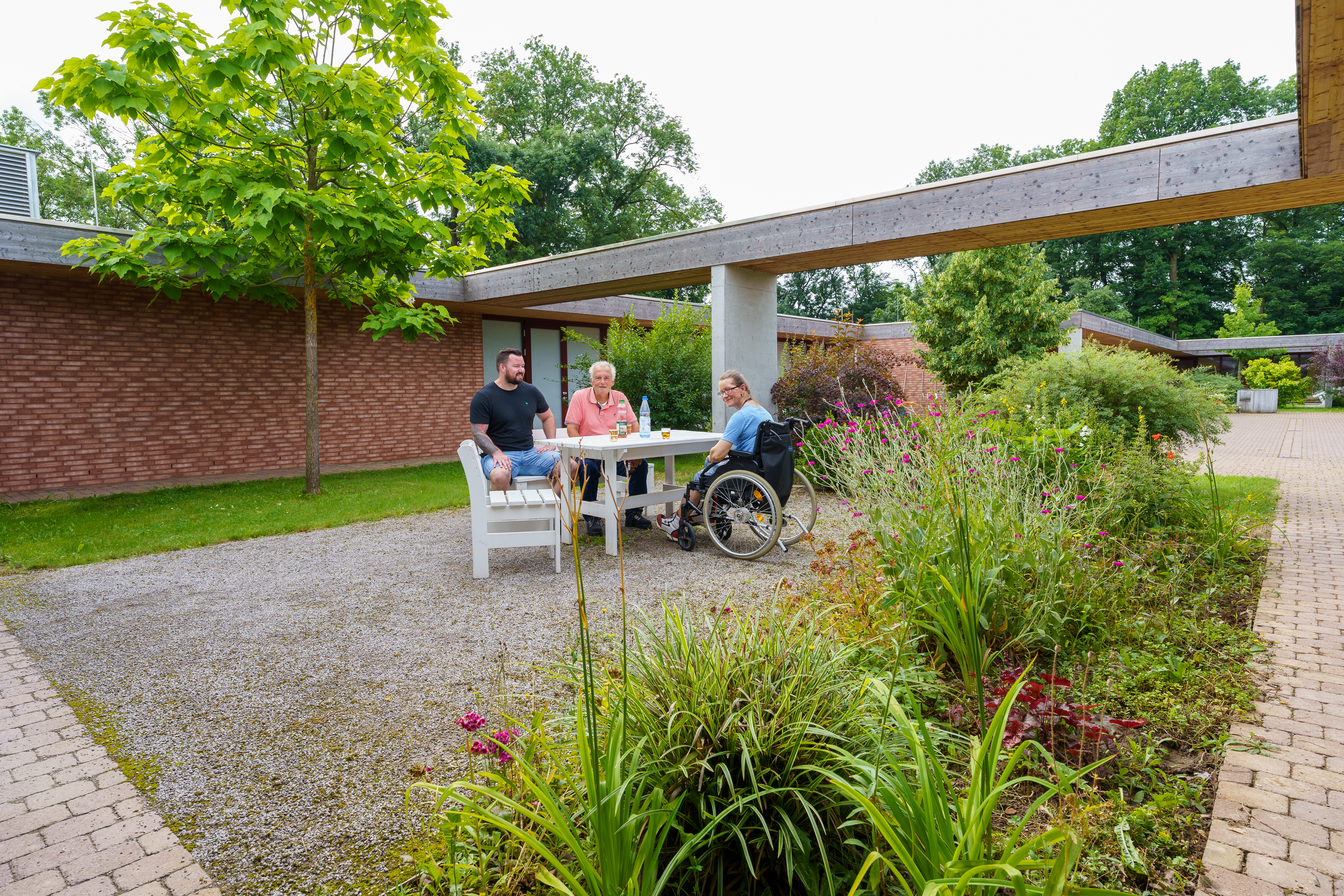 Umgeben von einem großzügigen Gelände mit eigenem Garten, verfügt das "Haus im Burggarten" über vier Wohngruppen mit jeweils neun Plätzen. Jede Wohngruppe hat einen eigenen Aufenthaltsbereich mit eigener Küche, in dem die Mahlzeiten gemeinsam eingenommen werden. Außerdem kann man dort Gesellschaftsspiele spielen oder sich mit anderen Bewohner*innen unterhalten. Die Zimmer verfügen über ein Pflegebett, einen Schrank mit Wertfach, einen Nachttisch und einen Stuhl.