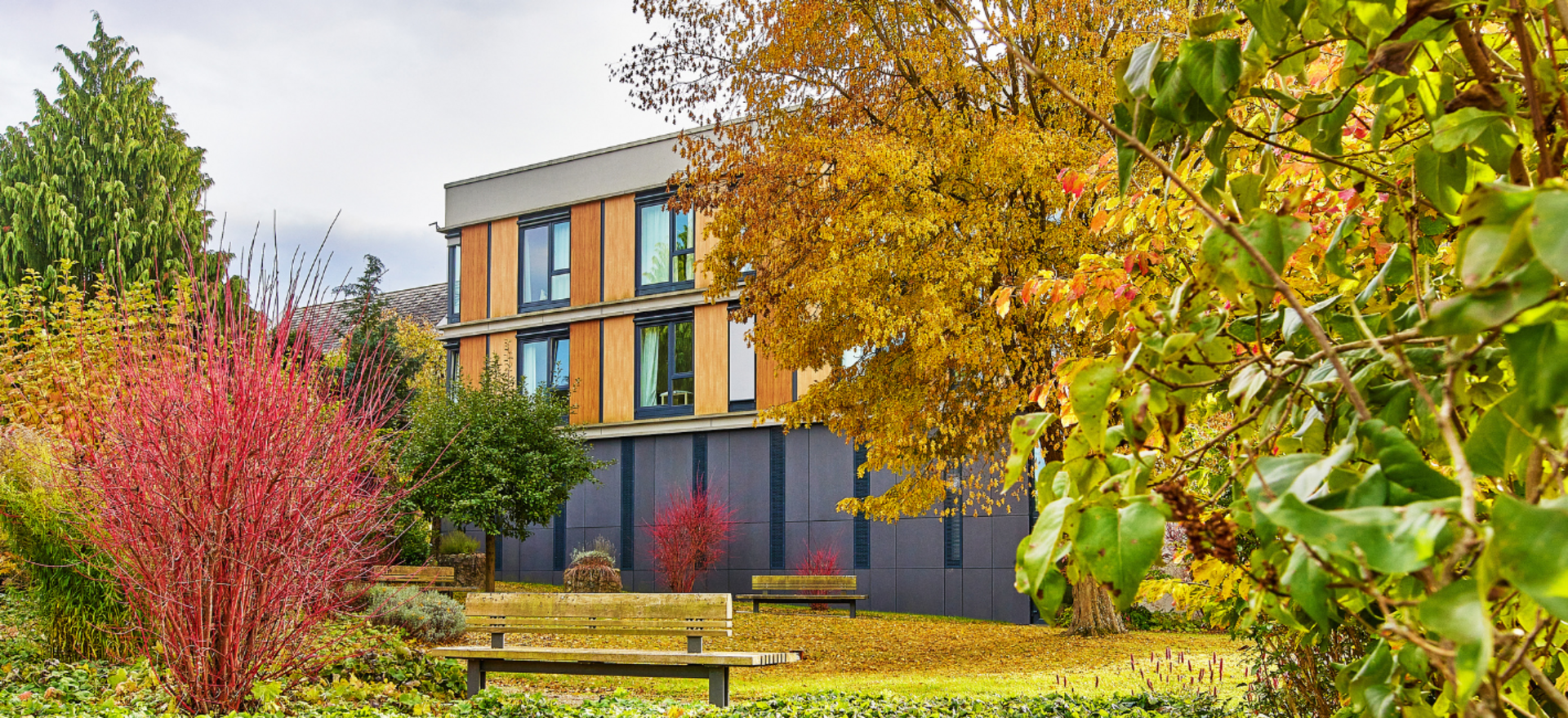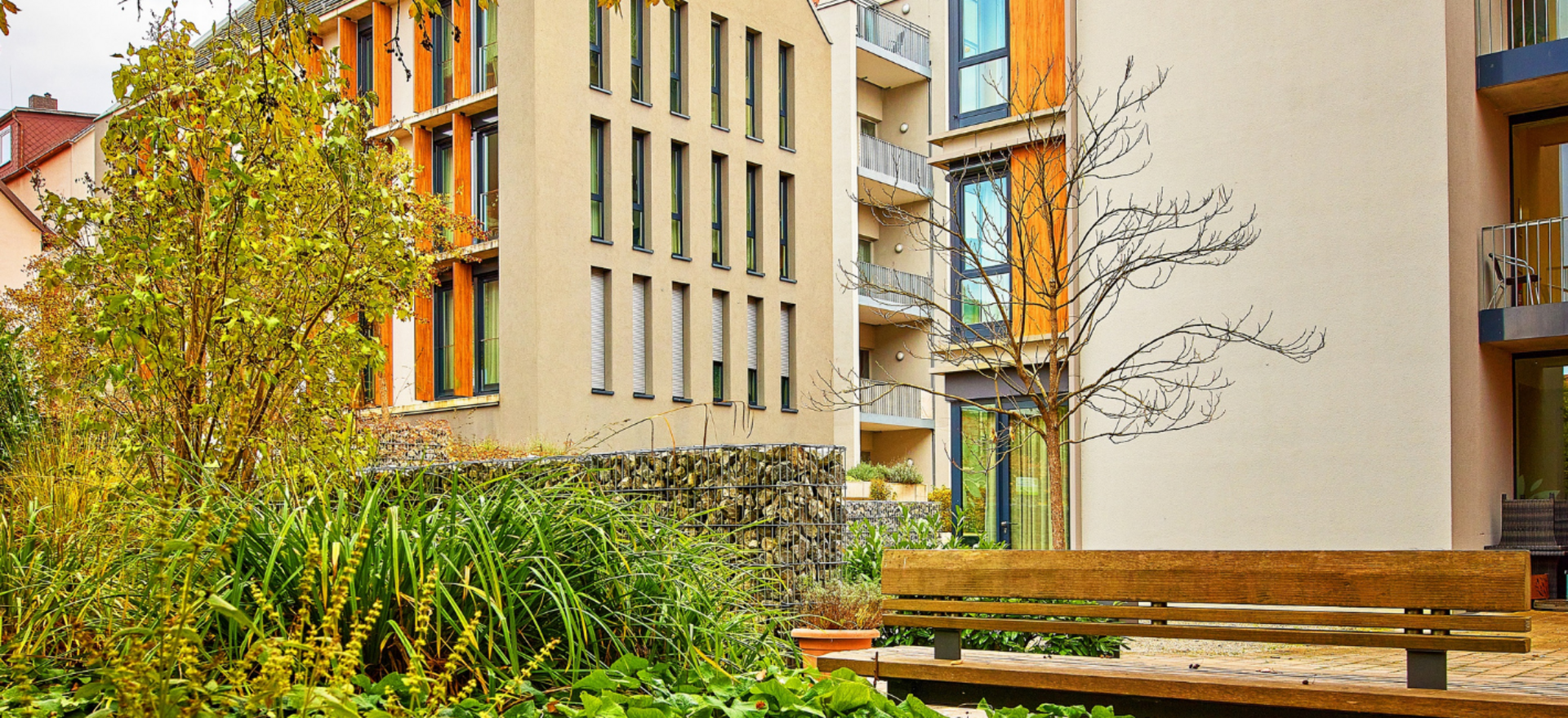 Behindertengerechte Wege rund um die Einrichtung ermöglichen auch Bewohner*innen mit Mobiltätseinschränkungen eine Bewegung mit Rollstuhl oder Rollator im Freien.