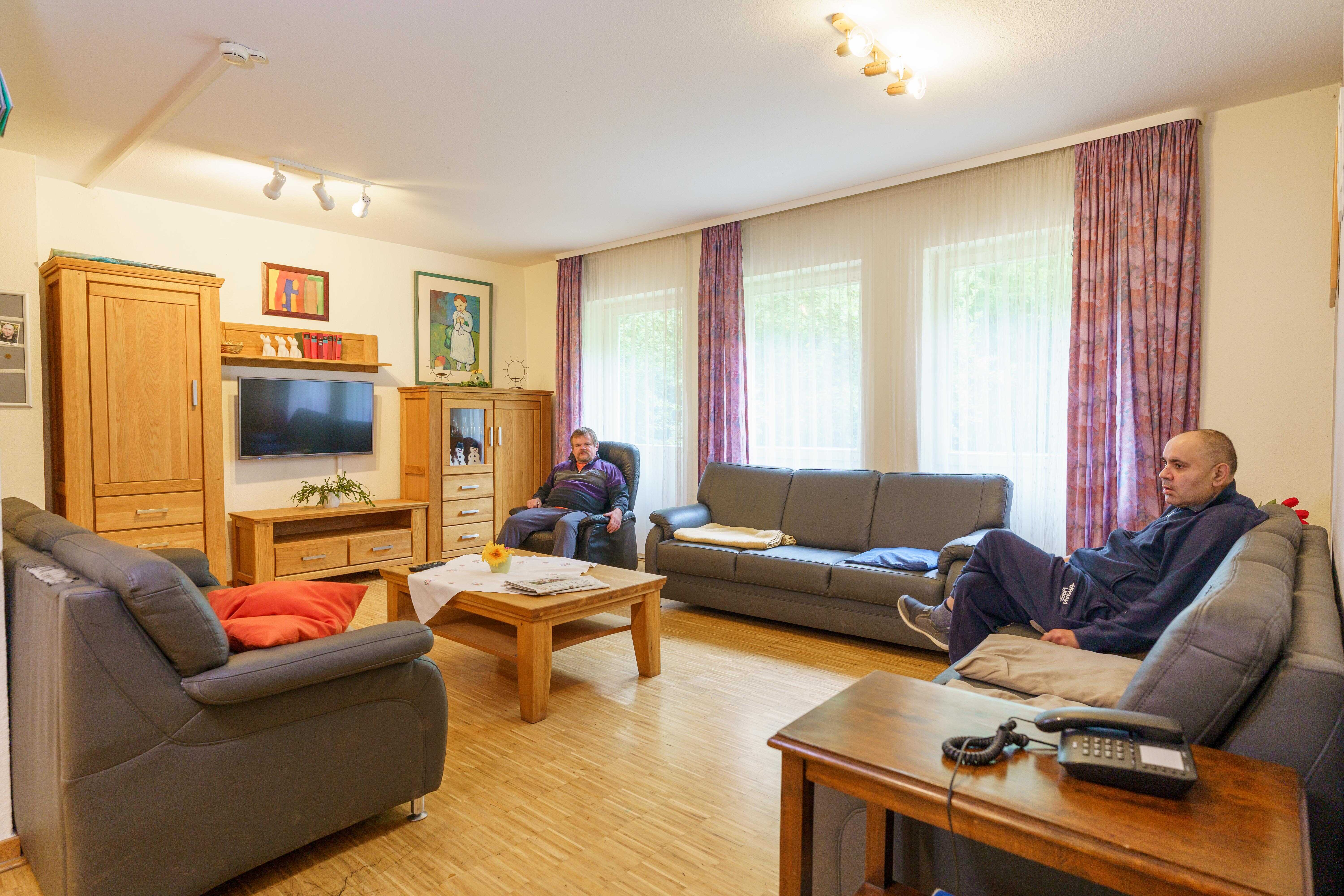 Die zwei Wohnhäuser der besonderen Wohnform befinden sich zentral auf dem Gelände des Guts Richerode, sie werden von verschiedenen Stallungen und Scheunen flankiert. Hier können insgesamt 19 Menschen wohnen. In einem weiteren Haus besteht für vier Personen die Wohnmöglichkeit im Rahmen des Ambulant Betreuten Wohnens. Die umliegenden Grünflächen auf dem Grundstück stehen allen zur Verfügung und können ganz individuell genutzt werden. Die vielen verschiedenen Tiere tragen zu der besonderen Atmosphäre des landwirtschaftlichen Hofs bei. Ein Blick in die geöffneten Stalltüren und –fenster oder die Beobachtung der Tiere in ihren Gehegen wirkt auf viele Menschen beruhigend und entspannend.