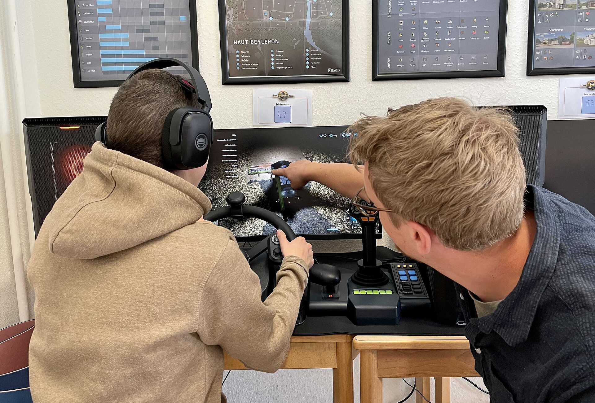 Sie haben nicht nur eine eigene App - den „Lernacker“ - entwickelt, die die Arbeitsfelder digital abbildet, auch das bekannte Computersimulationsspiel „Landwirtschaftssimulator“ wird in den Unterricht integriert. „Die App und der Landwirtschaftssimulator unterstützen uns dabei, das Gelernte aus dem Betrieb mit der Theorie zu verknüpfen und die Kenntnisse zu vertiefen“, so Lorenz Margraf. Der Einsatz dieser innovativen Lerntechniken zeuge von hohem Aufforderungscharakter: „Die Schüler werden ermutigt, das Erlernte aus der Praxis noch einmal auszuprobieren.“ Jeder der Schüler lernt nach seinem eigenen Arbeitsplan und setzt sich gemeinsam mit den Lehrkräften individuelle Ziele. Jonas Weber arbeitet auf seinen nächsten Meilenstein hin: „Mein Ziel ist es, den Traktorführerschein zu machen und damit auch den Mofaführerschein.